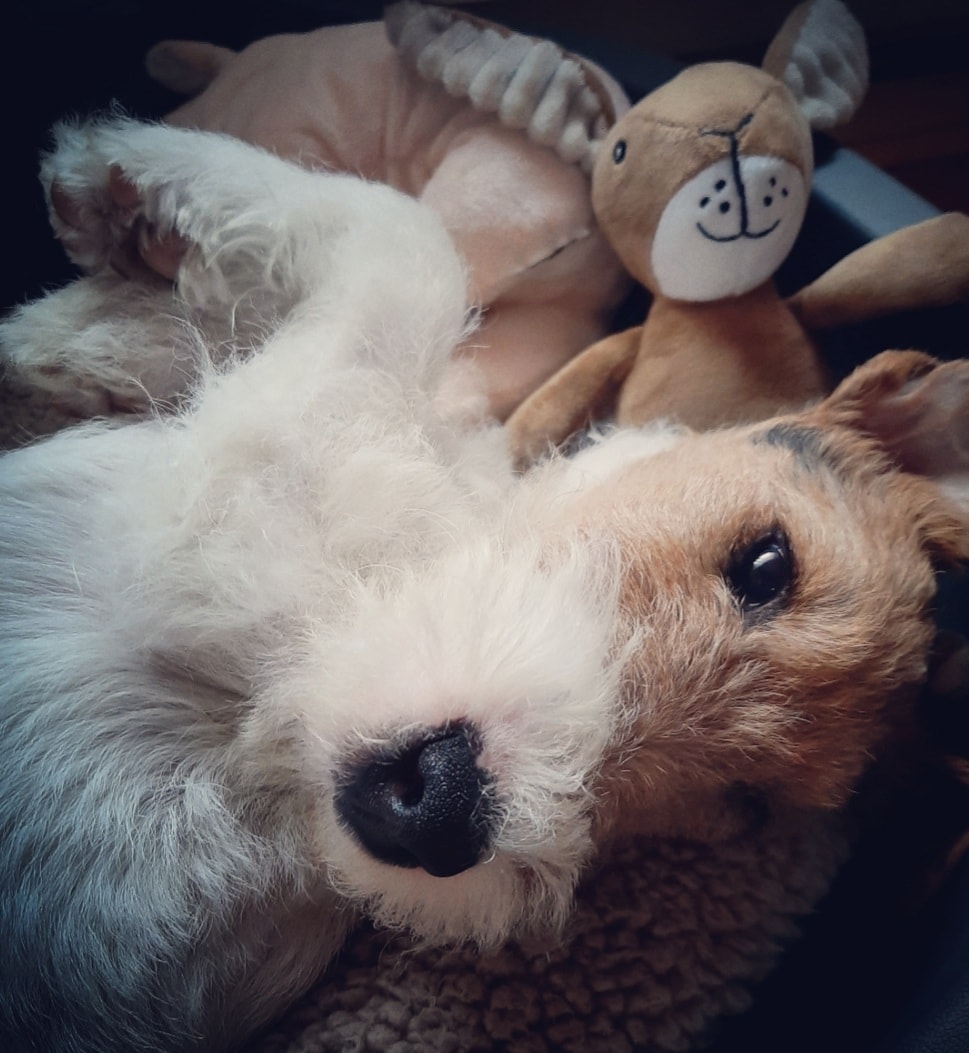 Es ist eine Drahthaar Foxterrier Hündin Namens "Rylie" und sie wurde am 28.05.2021 geboren .