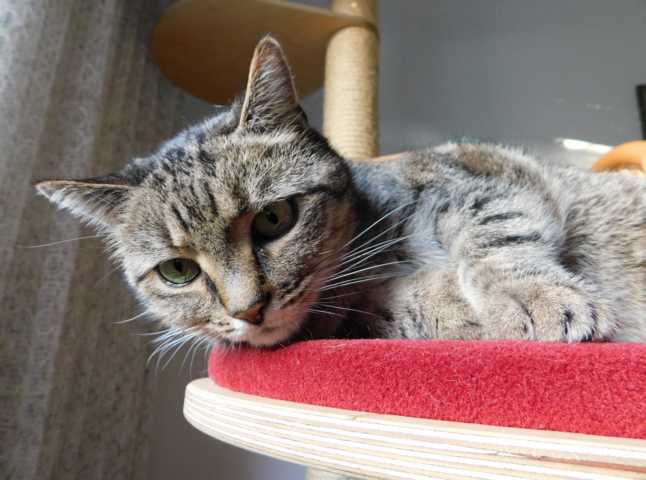 Becky auf ihrem Lieblingsschlafplatz, der Hängematte des Kratzbaums. Vorgestern ist sie untergeplumpst. :shock: Anschließend humpelte sie kurzfristig. Aber ich denke, daß nix Ernsthaftes passiert ist.